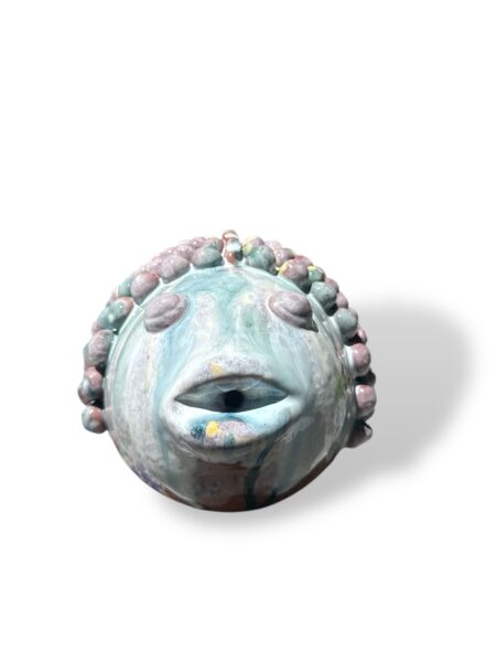 In ceramica e modellato interamente a mano.