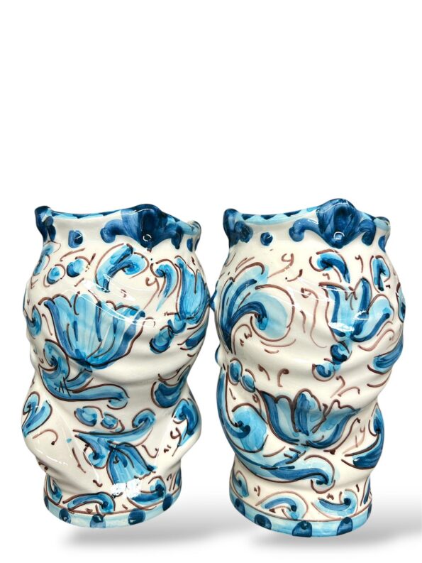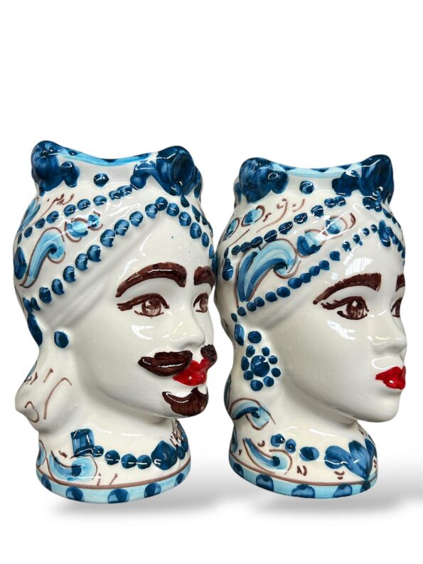 Coppia Teste di Moro blu floreale – in Ceramica di Santo Stefano di Camastra