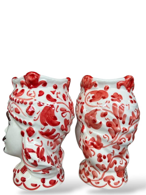 Coppia Teste di Moro rosso floreale – in Ceramica di Santo Stefano di Camastra